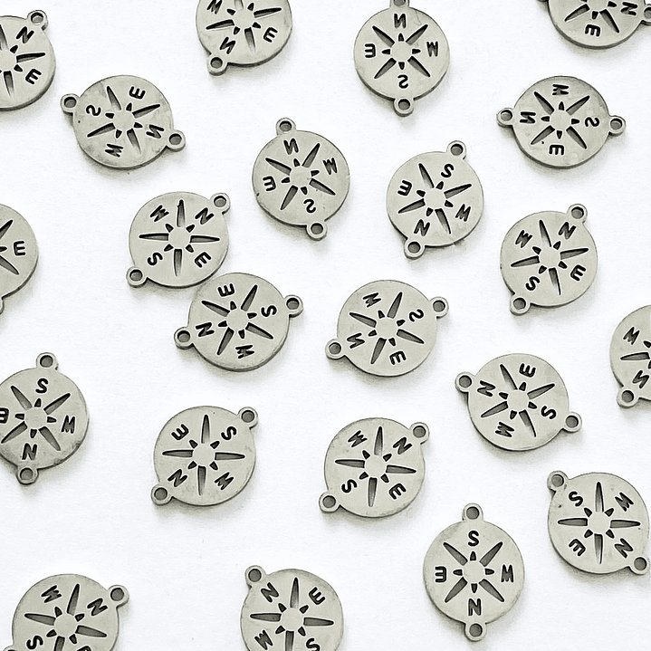 DIJE REDONDO BRÚJULA DOS ARGOLLAS EN ACERO NIQUEL