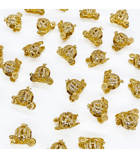 Elegante pasador metálico con diseño de carruaje, acabado en rodio brillante y decorado con microcircones que aportan un toque sofisticado y luminoso. Ideal para pulseras, collares o accesorios personalizados que buscan un estilo clásico y distintivo. Compatible con técnicas de bisutería fina, armado con alambre, hilo o cordón encerado.