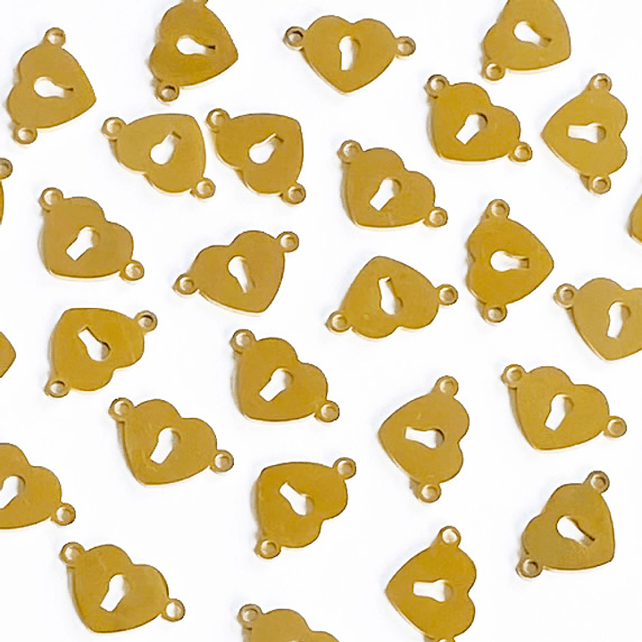 DIJE CORAZÓN CANDADO DOS ARGOLLAS EN ACERO DORADO