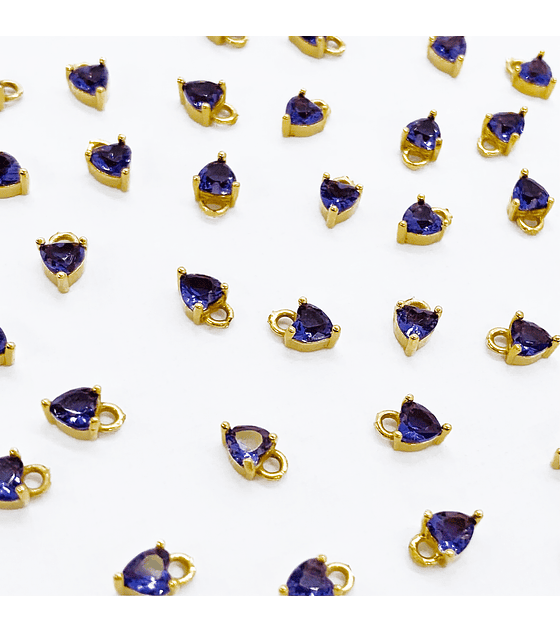 Dije pequeño con forma de corazón, elaborado en cristal transparente y montado en metal con un delicado baño de oro que resalta su brillo y elegancia. Ideal para complementar collares, pulseras y accesorios delicados, aportando un toque romántico y sofisticado a tus diseños de bisutería artesanal.