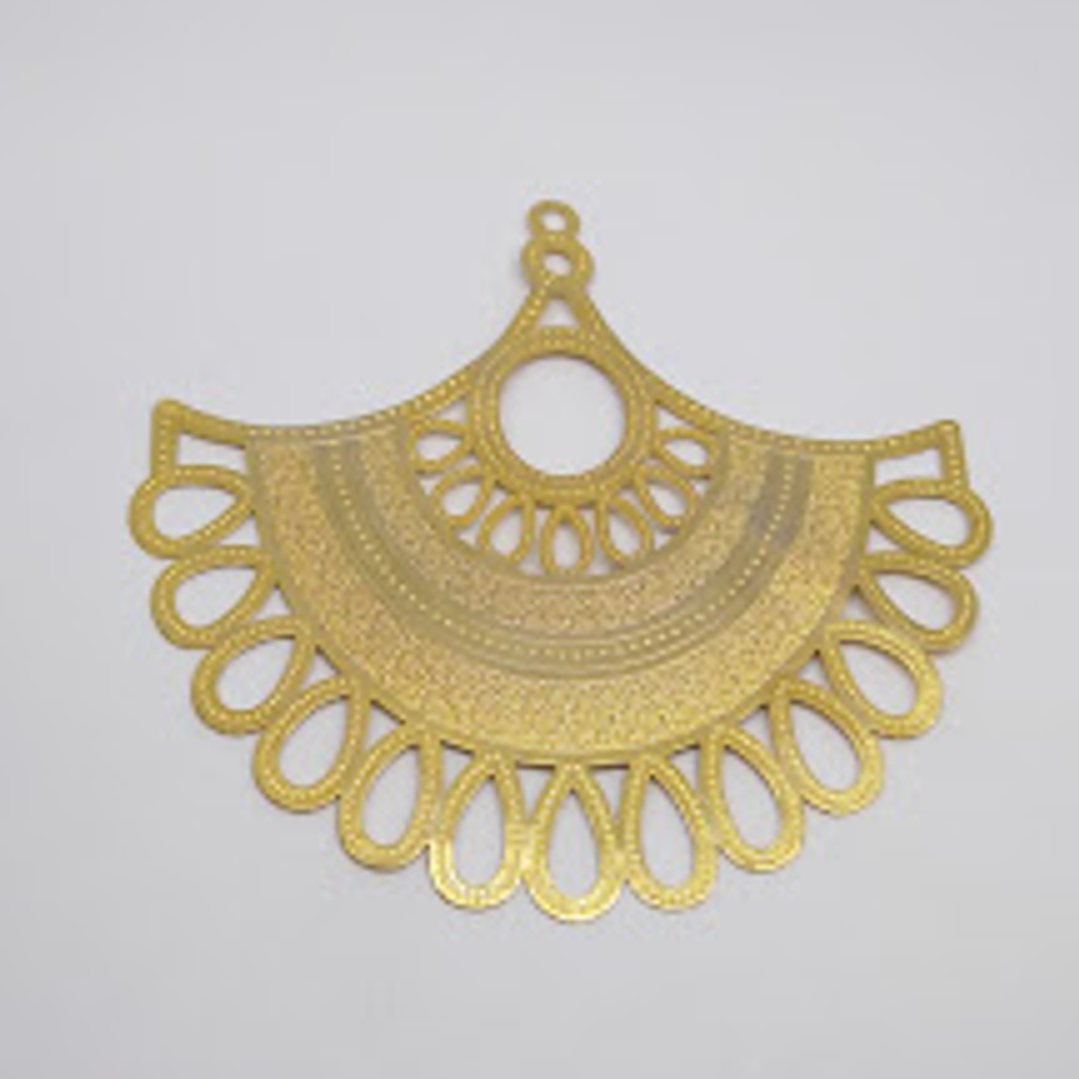 Dije herraje en forma de abanico con diseño de filigrana, elaborado en latón con baño de oro,