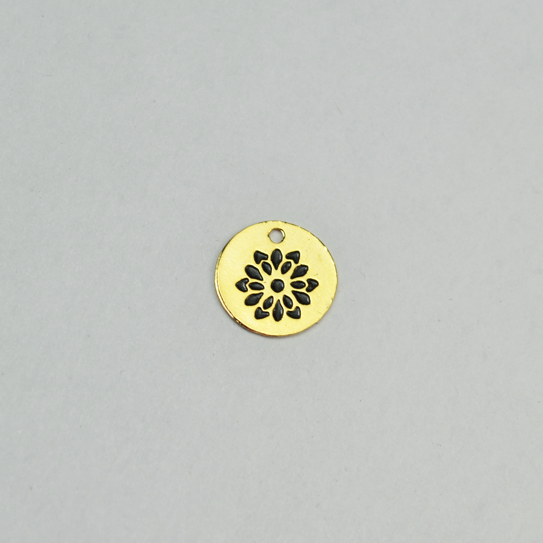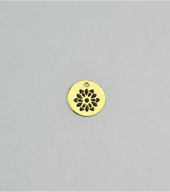 DIJE TIPO PLACA CON FLOR GRABADA EN LATÓN Y PINTADO DE NEGRO