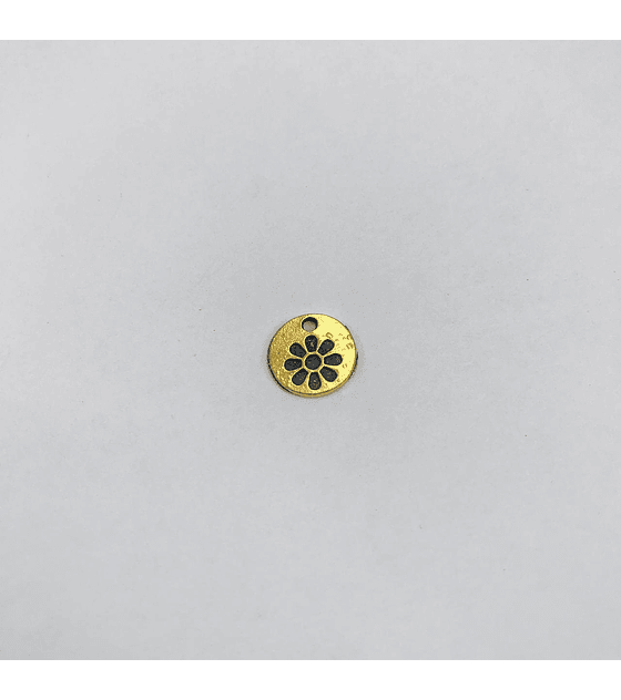 PLACA MONEDA FLOR PATINADA ZAMAK EN BAÑO DE ORO