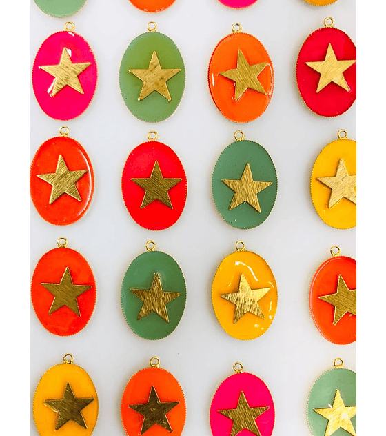 DIJE OVALADO ESTRELLA CON RESINA COLORES LATÓN BAÑO DE ORO