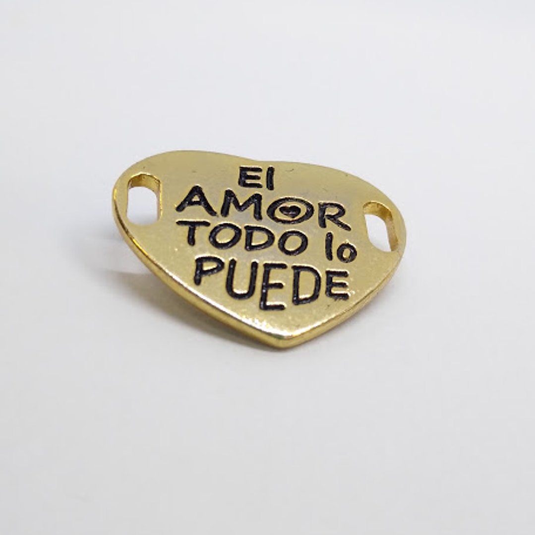 DIJE CORAZÓN EL AMOR TODO LO PUEDE 2 ARGOLLAS ZAMAK PATINADO BAÑO DE ORO