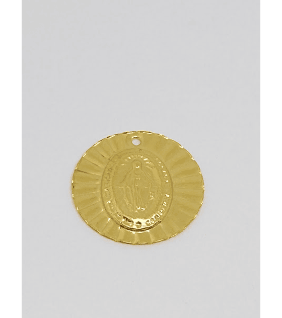 DIJE REDONDO VIRGEN EN LATÓN BAÑO DE ORO