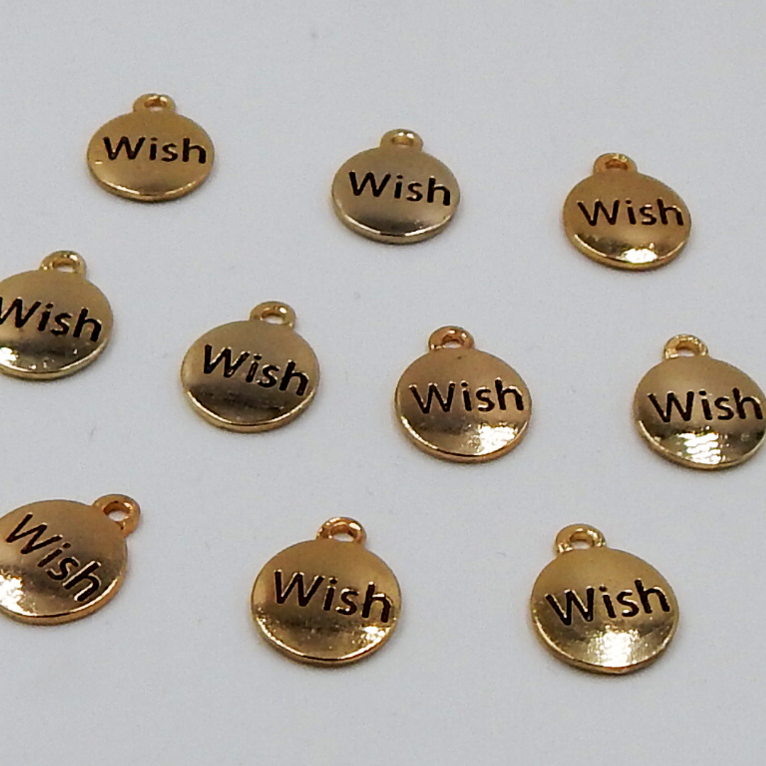 DIJE PLACA WISH ZAMAK PATINADO BAÑO DE ORO