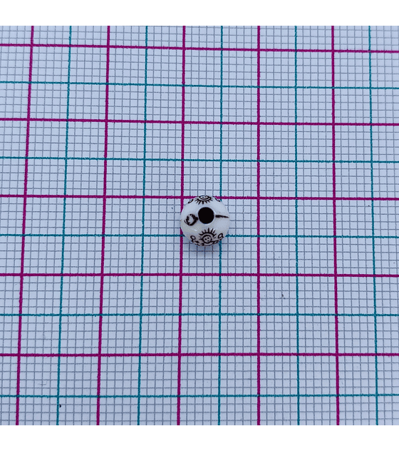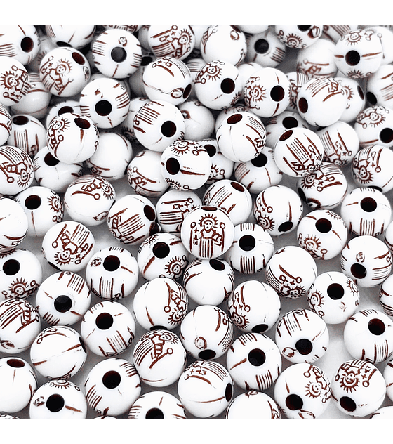 Separador en forma de bola plástica de 8 mm en color blanco, con grabado de San Benito en tono café.
