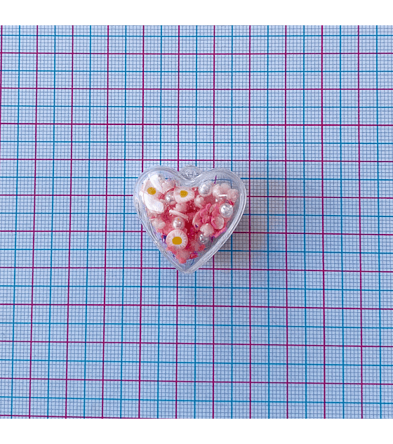 DIJE CORAZÓN BURBÚJA EN PLASTICO RELLENO CON APLIQUES