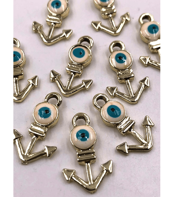DIJE ANCLA CON GRABADO EN FANTASÍA Y OJO TURCO EN RESINA