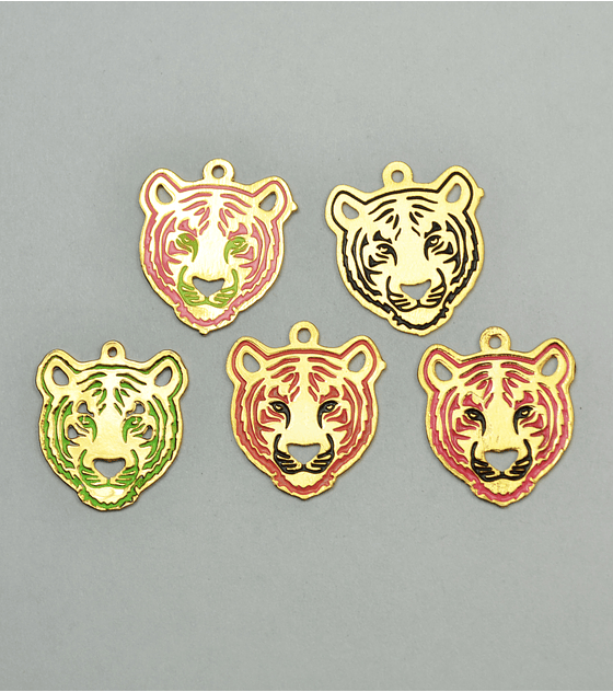 DIJE TIGRE CON MANCHAS GRABADAS EN LATÓN Y PINTADO EN COLORES