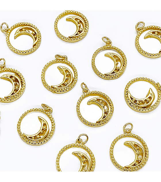 DIJE MEDIA LUNA CON ESTRELLAS EN RODIO CON NÁCAR