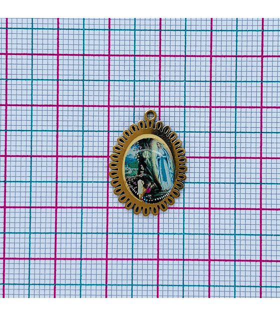 La medalla dorada con resina imagen Virgen de Lourdes en acero
