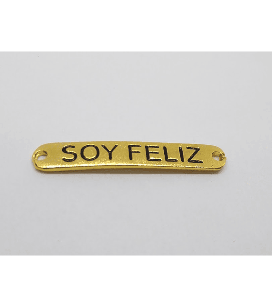 PLACA SOY FELIZ 2 HUECOS ZAMAK PATINADO BAÑO DE ORO