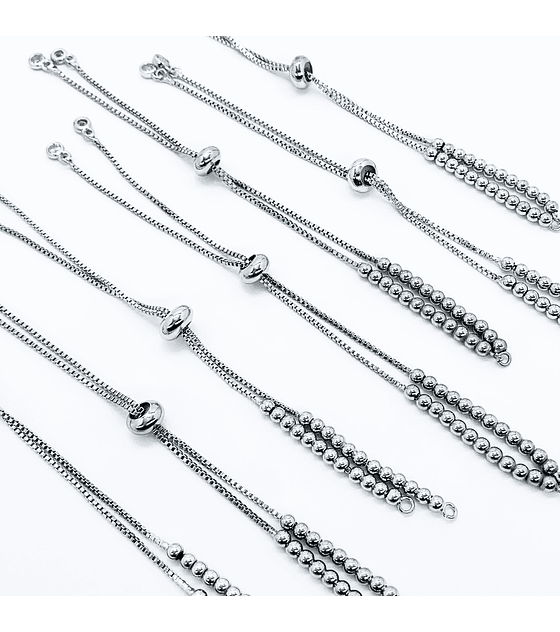 PULSERA AJUSTABLE EN RODIO CON BALINES Y TERMINACIÓN EN CIRCÓN