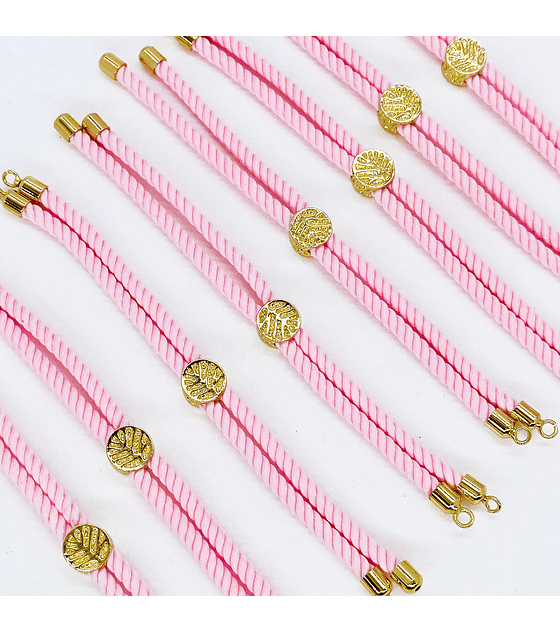 Diseñado para facilitar el ensamblaje de pulseras con cordón. Este componente incluye terminales metálicos que permiten sujetar y asegurar el cordón de forma firme y estética, brindando un acabado profesional a las piezas de bisutería. Es un insumo esencial para la elaboración de pulseras ajustables o pulseras con cierre, ya que permite conectar el cordón con broches, argollas u otros elementos del diseño. Se utiliza ampliamente en técnicas de armado de bisutería, joyería artesanal, ensamble de accesorios, elaboración de pulseras con cordón, macramé, pulseras tejidas y diseño de accesorios hechos a mano. También es conocido como herraje para pulsera, terminal para cordón, terminación metálica para pulseras, fornitura para bisutería o accesorio de cierre para pulseras, siendo una pieza clave para lograr acabados resistentes y profesionales en la creación de joyería y bisutería artesanal.
