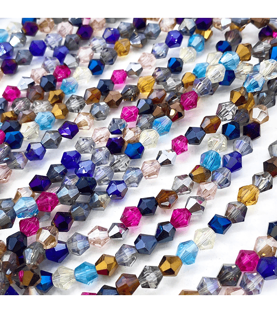 Cristal en forma de rombo de 6 mm, ideal como separador decorativo en la elaboración de collares, pulseras, aretes, rosarios, tobilleras y más. Su diseño facetado aporta brillo y elegancia, realzando otras piezas como piedras, dijes o cuentas.