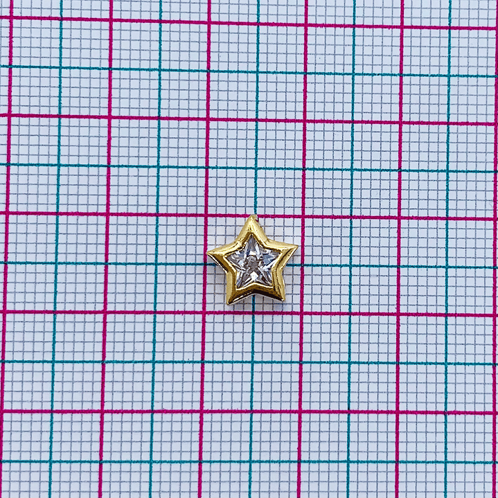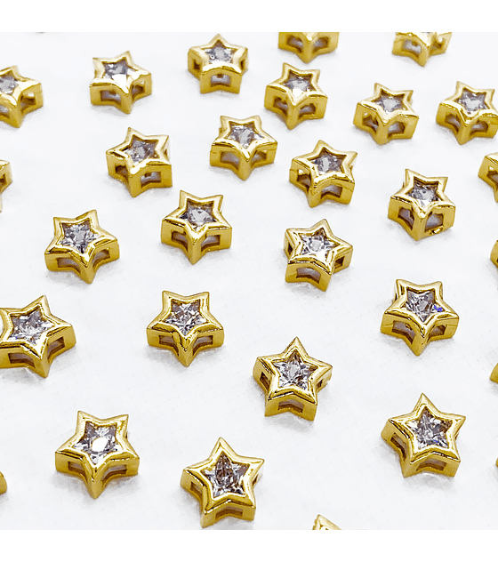 Separador o pasador con forma de estrella, fabricado en metal con baño de oro y decorado con una brillante circonía que añade elegancia y sofisticación a tus piezas de bisutería. Ideal para dividir y resaltar secciones en collares, pulseras y accesorios artesanales, aportando un detalle luminoso y moderno.