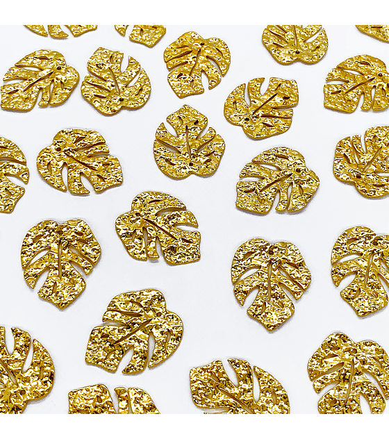 DIJE HOJA ARRUGADA LATÓN EN BAÑO DE ORO