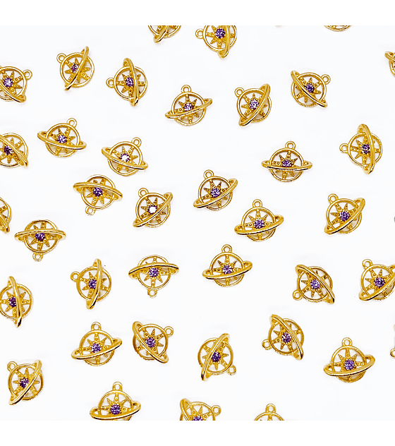 DIJE PLANETA EN ZAMAK CON MICRO CIRCÓN EN BAÑO DE ORO